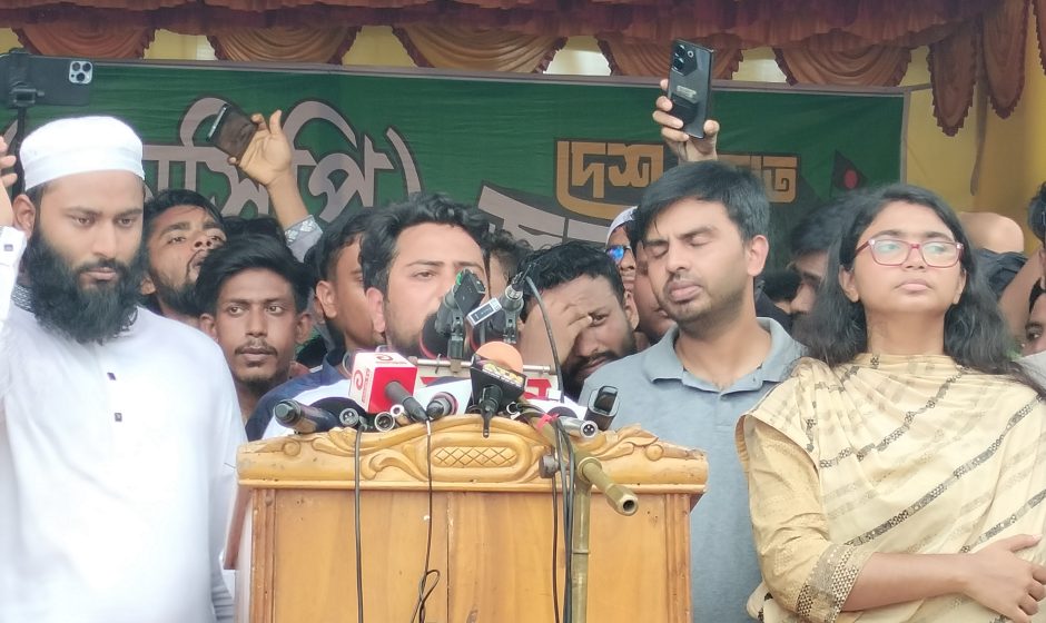 এসময় উপস্থিত ছিলেন- জাতীয় নাগরিক পার্টির (এনসিপি) কেন্দ্রীয় কমিটির মূখ্য সংগঠক হাসনাত আবদুল, মূখ্য সংগঠক সারজিস আলমসহ স্থানীয় ও কেন্দ্রীয় নেতৃবৃন্দ। পরে তিনজনের বক্তব্য শেষে কেন্দ্রীয় নেতৃবৃন্দ দ্রুত সমাবেশস্থল ত্যাগ করে শেরপুরের উদ্দেশ্য চলে যান।